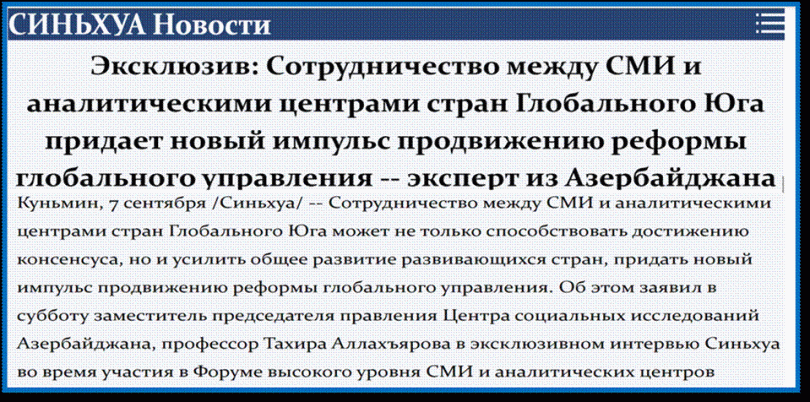In her interview titled “Cooperation between Media and Think Tanks in the Global South Will Give Fresh Impetus to Governance Reforms,” Professor Tahira Allahyarova noted: